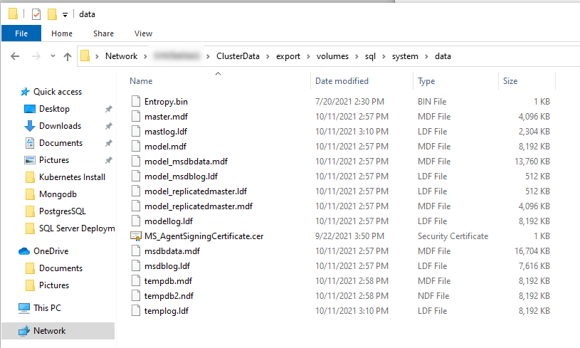 Later, we will map directories on our Pods, that SQL Server uses, and map those to the NFS share directories. We will see how this is done a little later when we look at Persistent Volumes and Persistent Volume Claims.