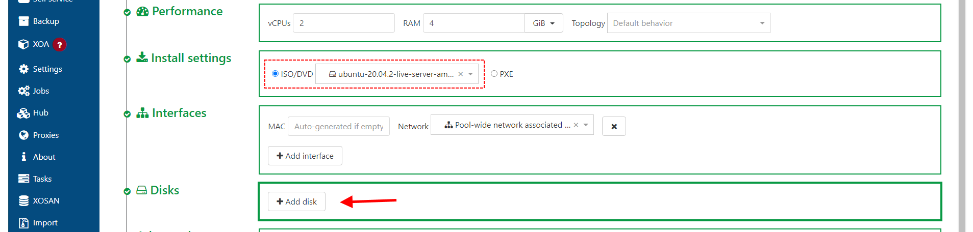 So let’s start creating our new virtual machine. We start out by selecting the “Other install media” because we are going to install Ubuntu Server, which was not one of the built-in templates that Xen Orchestra has. In creating these virtual machines, we are going to use the ISO that we used when we created Xen Orchestra server.