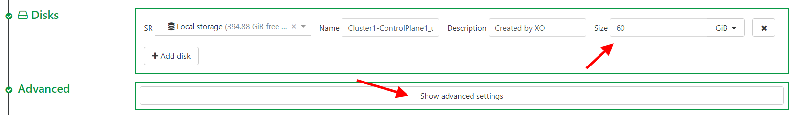 Because I have the space, I chose to provide this virtual machine with a 60gb disk. After providing the size of the disk, click on the “Show advanced settings” button (rather long button) in the ……..